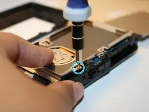 Удалите винты Philip толщиной 4 мм, расположенные над центральной пленкой, с помощью отвёртки Philips. Это позволит снять верхнюю рамку.