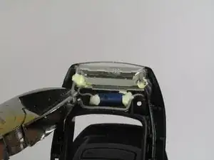 Внутри находится конденсатор высокого напряжения, который питается от вспышки камеры. Этот конденсатор должен быть безопасно разряжен перед тем, как продолжить эту ремонтную работу (в руководстве это не описано).