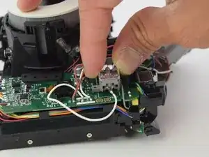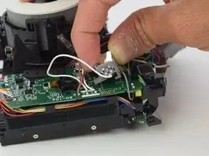 Извлеките лампу вспышки с платки, сдвинув её в сторону, где расположен мотор, и подняв вверх.