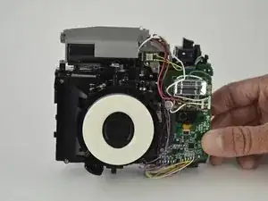 Повернув камеру лицевой стороной вниз, снимите только заднюю половину корпуса.