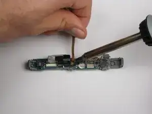 Удалите излишки припоя с помощью паяльника и оплетки для удаления припоя.