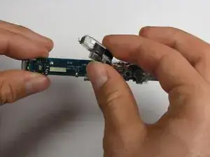 Осторожно покачайте лампу вспышки, чтобы извлечь её из контактов.