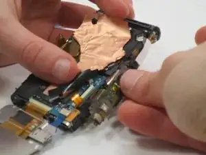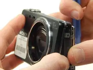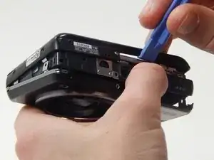 Используйте пластиковый монтажный инструмент, чтобы аккуратно снять переднюю и заднюю панели корпуса камеры.