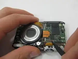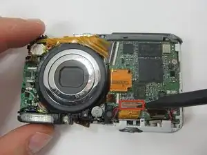 Используя пинцет, осторожно снимите шлейф с показанного коннектора.