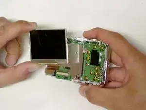 Вам необходимо разобрать камеру, чтобы заменить повреждённый LCD-экран и восстановить функциональность.