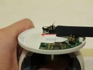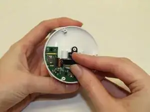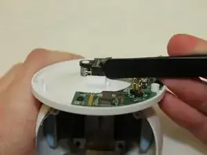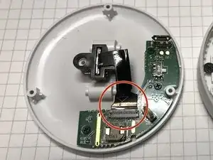 Аккуратно оторвите узел линзы/батареи от основания Circle, соблюдая осторожность по отношению к ленточному кабелю.