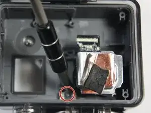 Удалите четыре винта Phillips #000 длиной 4 мм, фиксирующие объектив к корпусу.