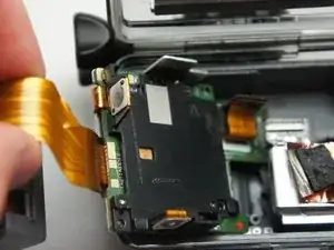 Снимите ленточный кабель, подключённый к объективу, пальцами.