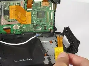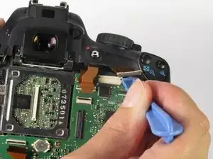 Используйте пластиковый инструмент для вскрытия, чтобы отсоединить лентовый кабель, соединяющий матрицу с материнской платой.