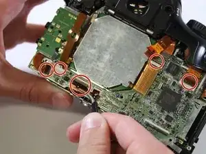 В этом руководстве показано, как извлечь материнскую плату камеры, расположенную сзади корпуса. Материнская плата обеспечивает связь между всеми отдельными компонентами; без работоспособной материнской платы устройство представляет собой дорогостоящий кусок металла. Материнские платы редко выходят из строя, но если камера пострадала от воды, падения или иначе не работает, и другие неисправные компоненты исключены, пришло время заменить материнскую плату.