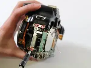 Отверткой PH000 отвинтите два винта 3 мм на правой стороне камеры (со стороны ЖК-экрана).