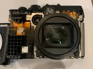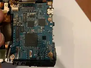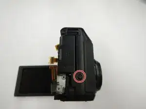 Последний винт расположен ближе к верхней части задней стороны камеры рядом с видоискателем. Отвинтите его с помощью крестовой отвертки Phillips 00.