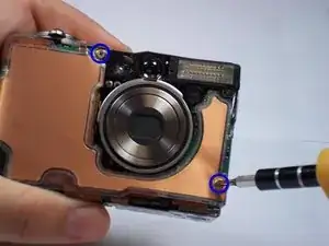 Снимите один винт 4.3 мм непосредственно под кнопкой питания на верхней части фотоаппарата.