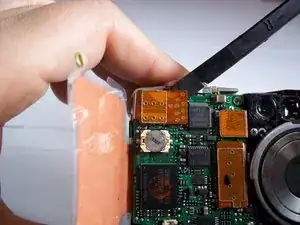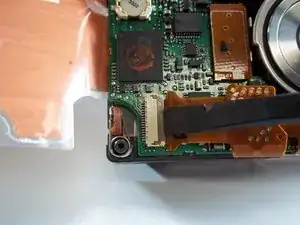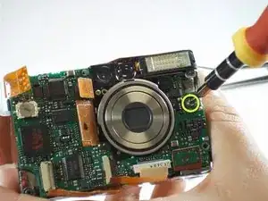 Удалите один винт 3,9 мм с правой стороны материнской платы, под модулем вспышки.