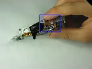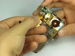 Используйте пинцет, чтобы извлечь динамик, расположенный в верхней части камеры на блоке вспышки.