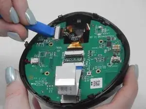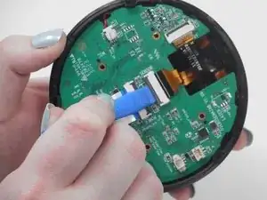 Используйте инструмент iFixit, чтобы отключить синий и белый ленточный кабель.