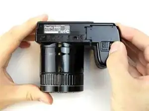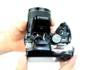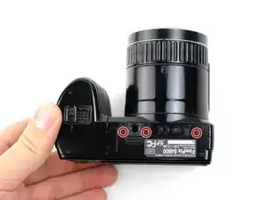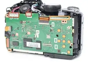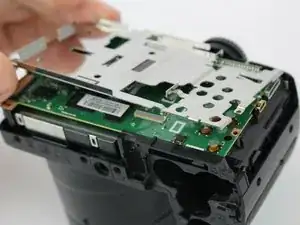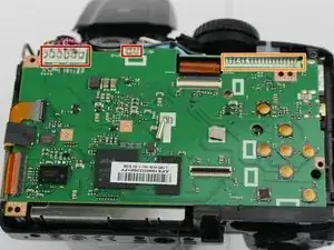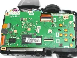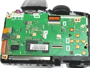 В этом руководстве мы разберём Fujifilm FinePix S4800, чтобы вынуть и заменить материнскую плату. Для этого снимается задняя пластиковая крышка камеры: сначала удаляются винты, затем с помощью пластикового монтажного инструмента снимается задняя крышка с остальной части корпуса. После снятия ЖК-экрана останется только несколько винтов, удерживающих радиочастотный экран и материнскую плату.
