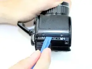 Пластиковая крышка хрупкая, поэтому действуйте медленно, равномерно поддевая каждую сторону по очереди по мере продвижения вокруг камеры инструментом.