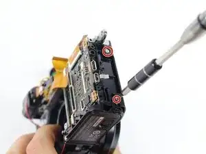 Чтобы добраться внутрь камеры, сначала необходимо снять правую сборку крышки портов. После её снятия у вас появится доступ к винтам, фиксирующим другие компоненты.