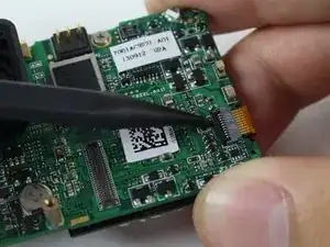 Слегка поддев лопаткой, отсоедините разъём медиадаптера от материнской платы.