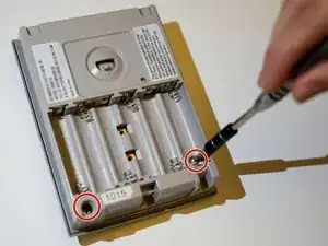 Удалите батареи из аккумуляторного отсека.