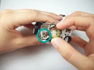 Поверните серый фиксатор против часовой стрелки, чтобы снять его с серебряного крепления ЖК.