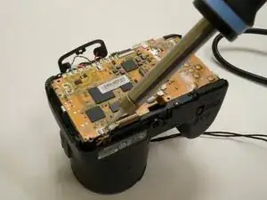 Отпаять все провода, находящиеся на верхней части материнской платы рядом с блоком вспышки.