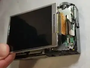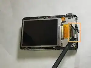 Осторожно потяните панель, чтобы отсоединить шлейф дисплея от корпуса камеры.