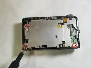 Используя отвертку Phillips #000, удалите два черных винта 3,2 мм с обеих сторон камеры.