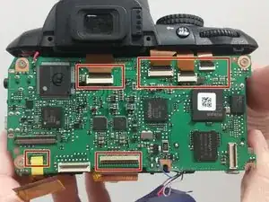 Материнская плата расположена за ЖК-экраном и задней панелью камеры. Она относительно доступна, но для полного отключения потребуется паяльник.