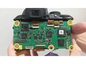 Удалите пять винтов с головкой Phillips размером 4 мм x 4 мм, крепящих материнскую плату к корпусу камеры.