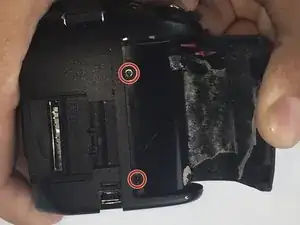 Удалите два винта длиной 4 мм на левой стороне фотоаппарата.