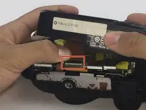 Удалите разъём, расположенный в правом верхнем углу фотоаппарата.