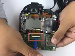 Осторожно приподнимите материнскую плату, чтобы отделить её от задней части фотоаппарата.
