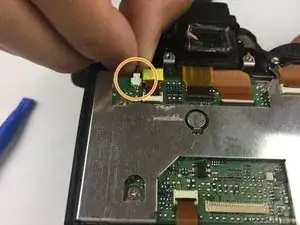 Осторожно отсоедините шлейф, используя медиатор, чтобы приподнять разъём, затем пинцетом извлеките шлейф.