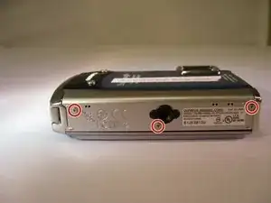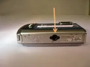Отвёрткой Phillips 00 отвинтите винт 3,9 мм, расположенный внизу камеры прямо под вспышкой.