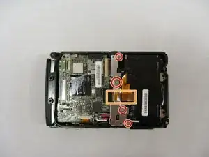 Отвёрткой Phillips 00 отвинтите винты 9 мм на верхней части камеры справа от вспышки.