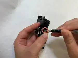 Открутите и удалите один винт Phillips #00 длиной 2 мм, чтобы снять блок вспышки на верхней части платы.