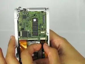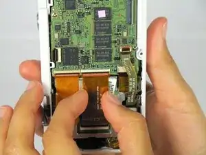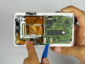 Снимите шлейф, подняв серую защёлку на ZIF-разъёме с помощью металлической лопатки.