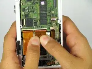 Медленно и осторожно извлеките шлейф из ZIF-разъёма, удерживая заднюю часть шлейфа.
