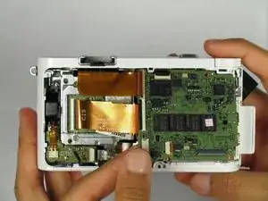 В этом руководстве показано, как заменить материнскую плату в камере. Перед началом замены убедитесь, что камера выключена и батарея вынута.