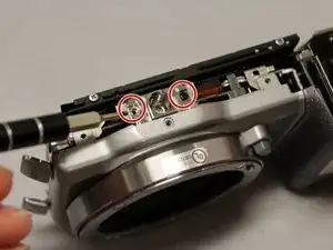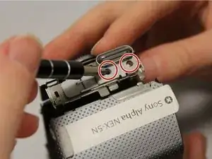 Выверните по 2 чёрных винта Phillips 1.2 мм №000, по одному с каждой стороны разъёма для штатива.