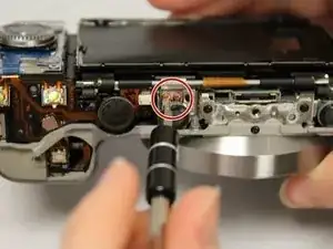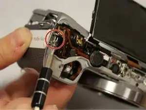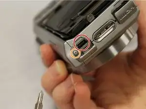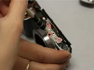 Выверните 3 серебристых винта Phillips 1.2 мм №000 на нижней части камеры.