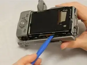 Вставьте лопаточку в щель между верхней панелью (где находится кнопка записи видео) и ЖК-экраном.
