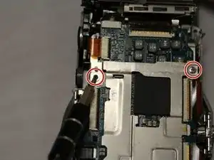 Выверните 2 серебристых винта Phillips 3.5 мм №0, находящихся на внутренней нижней части отсека батареи.