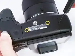 Удалите 2 (4 см) винта с крестовой головкой с правой стороны камеры.