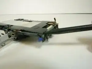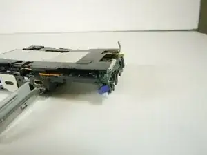 Держа одну руку на пластиковом каркасе, а другую на материнской плате, потяните материнскую плату влево, чтобы отключить последний шлейф.
