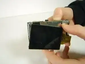 Сдвиньте правую сторону ЖК-экрана по часовой стрелке — это оттолкнёт его от камеры. Остальная часть экрана должна легко снять вместе с ним.