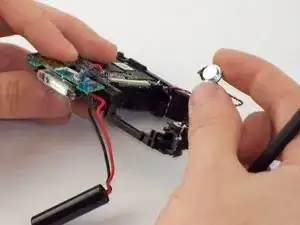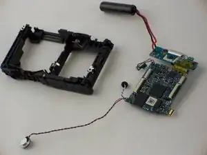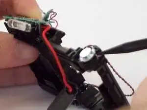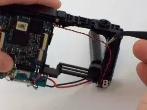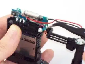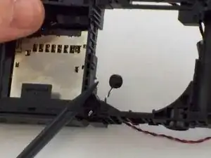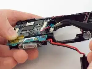 С помощью пинцета снимите черно-красный провод динамика из корпуса камеры.