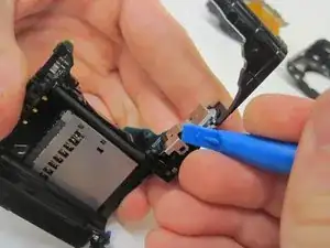 С левой стороны камеры снимите ЖК-дисплей с задней панели.